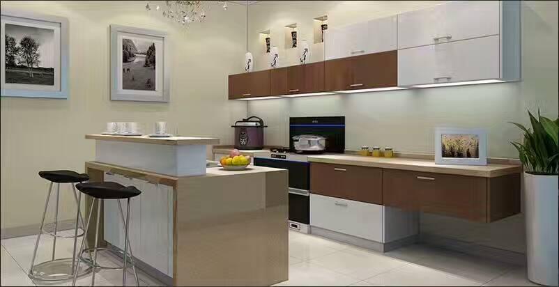 中国人的厨房普遍较小,所以在整体色彩上,切忌花花绿绿,在厨柜的选择上,应该采用浅色系,这样才能在视觉上放大厨房。